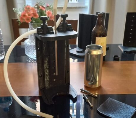 Envasador / enchedor por contrapressão para latas impresso em 3D com filamento PETG impermeável a líquidos e de fácil higienização.